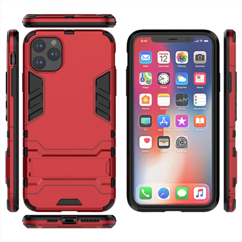 Shockproof PC + TPU Case with Holder for 11 Pro Max(Red)