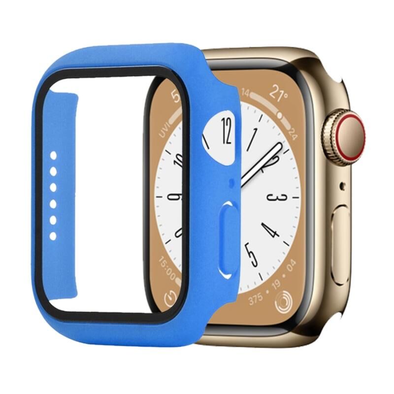Shockproof PC+Tempered Glass Watch Protective Case For Apple Watch Series 8&7 41mm(Blue)