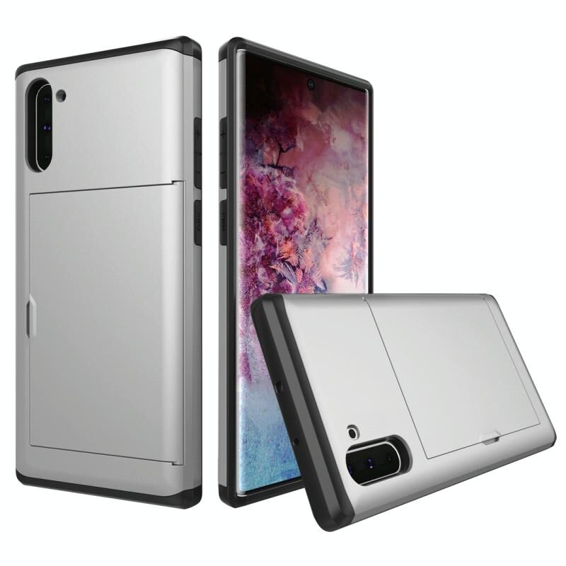 Shockproof Rugged Armor Protective Case with Card Slot for Galaxy Note 10(Silver)