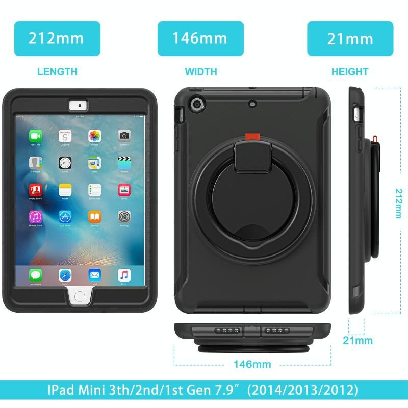 Shockproof TPU + PC Protective Case with 360 Degree Rotation Foldable Handle Grip Holder & Pen Slot For iPad mini 3 / 2 / 1(Black)