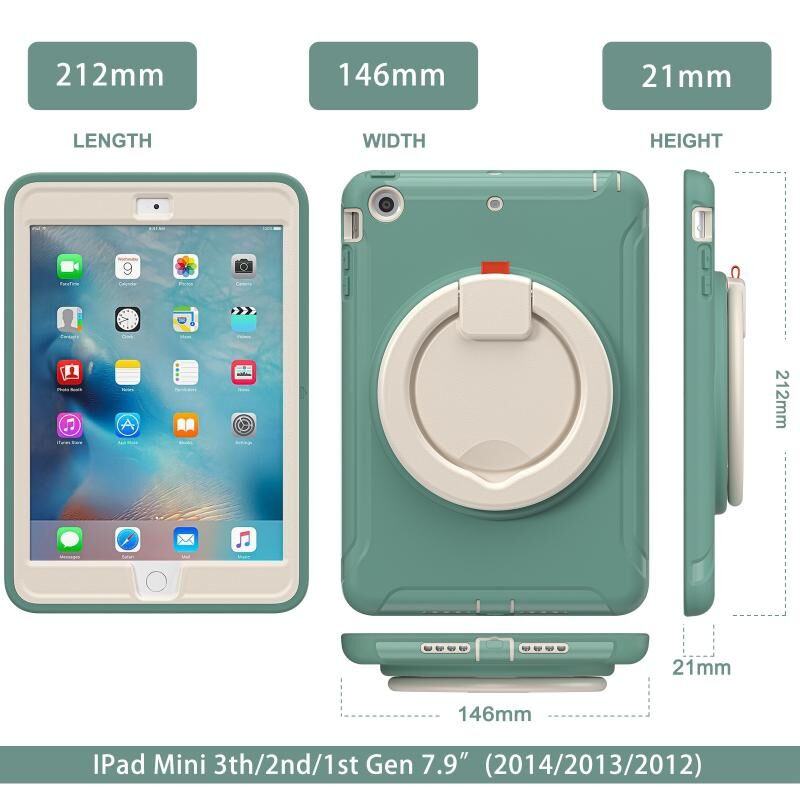 Shockproof TPU + PC Protective Case with 360 Degree Rotation Foldable Handle Grip Holder & Pen Slot For iPad mini 3 / 2 / 1(Emmerald Green)