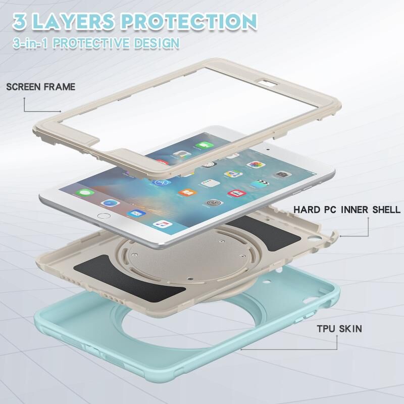 Shockproof TPU + PC Protective Case with 360 Degree Rotation Foldable Handle Grip Holder & Pen Slot For iPad mini 3 / 2 / 1(Ice Crystal Blue)