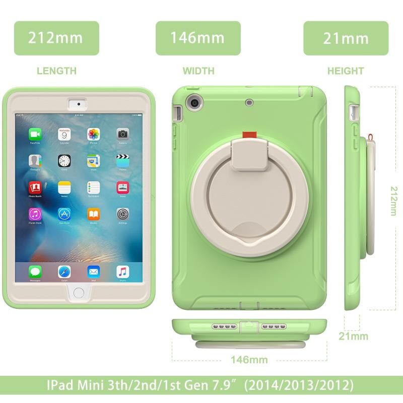 Shockproof TPU + PC Protective Case with 360 Degree Rotation Foldable Handle Grip Holder & Pen Slot For iPad mini 3 / 2 / 1(Matcha Green)