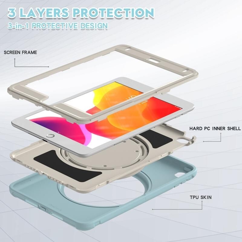 Ανθεκτική θήκη προστασίας TPU + PC για iPad mini 5 / 4 με περιστρεφόμενη λαβή στήριξης 360 μοιρών και θήκη για στυλό (Σμαραγδένιο Πράσινο)