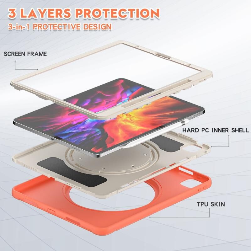 Shockproof TPU + PC Protective Case with 360 Degree Rotation Foldable Handle Grip Holder & Pen Slot For iPad Pro 12.9 2020 / 2018(Living Coral)