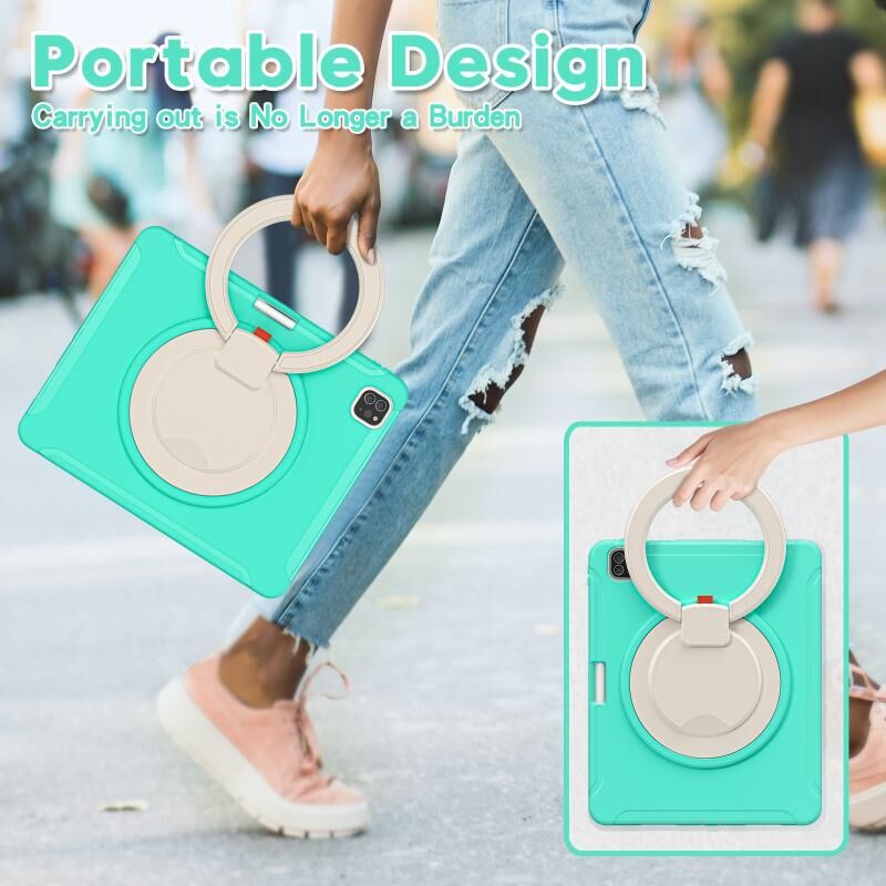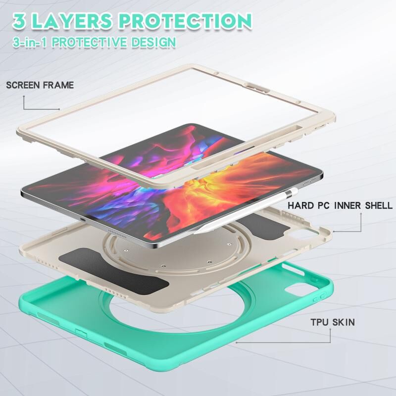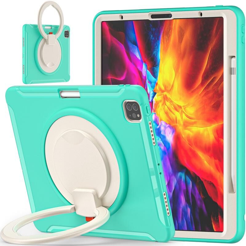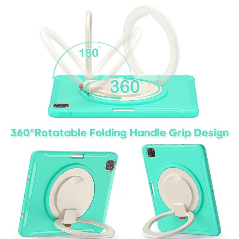 Shockproof TPU + PC Protective Case with 360 Degree Rotation Foldable Handle Grip Holder & Pen Slot For iPad Pro 12.9 2020 / 2018(Mint Green)