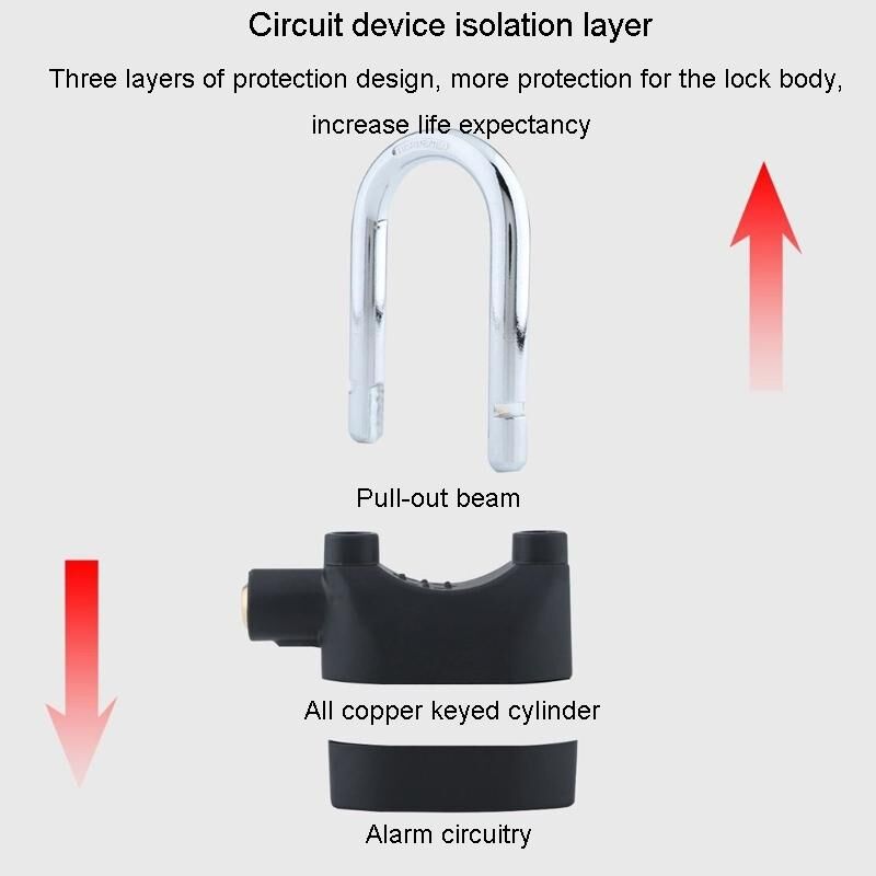 4. Three layers of protection design, pull-out lock beam, all-copper key lock cylinder, alarm circuit device, more protection of the lock body, anti-picking, growth of service life