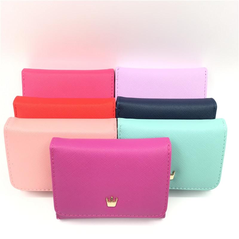 Short Mini Women Wallets Crown Decorated Fold PU Leather Coin Purse Card Holder(Purple)