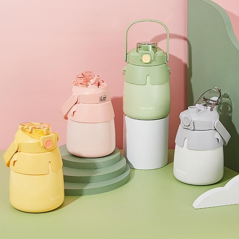 SHOTAY ST-8063 Παιδικό Παγούρι με Χοντρή Κοιλιά, Ανοξείδωτο Θερμός, Χαριτωμένο Παγούρι με Λουρί (Γκρι) (SHOTAY)