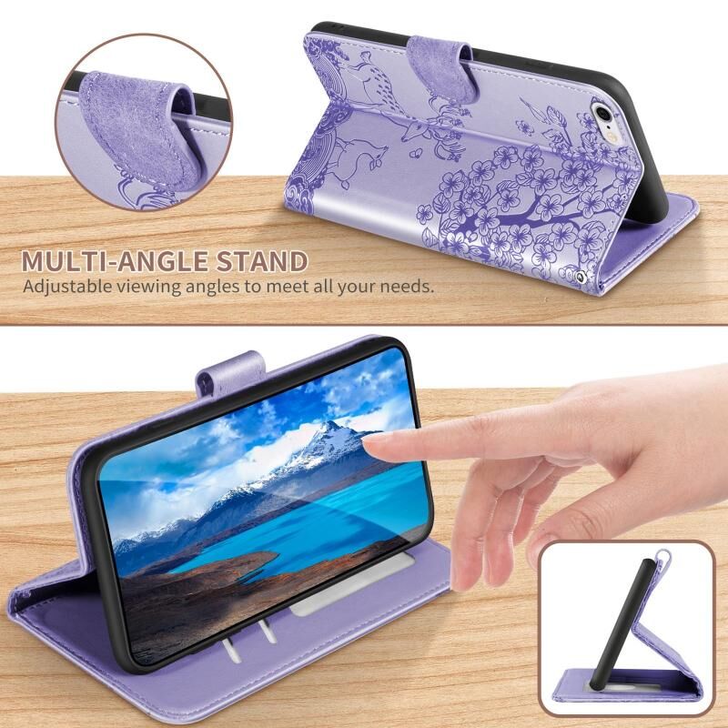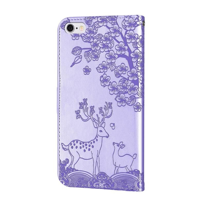 Θήκη δέρματος PU με οριζόντιο άνοιγμα και ανάγλυφο σχέδιο ελαφιού Sika, με βάση, θήκη καρτών, πορτοφόλι και κορνίζα φωτογραφιών για iPhone 6 Plus / 6s Plus (Κόκκινο)
