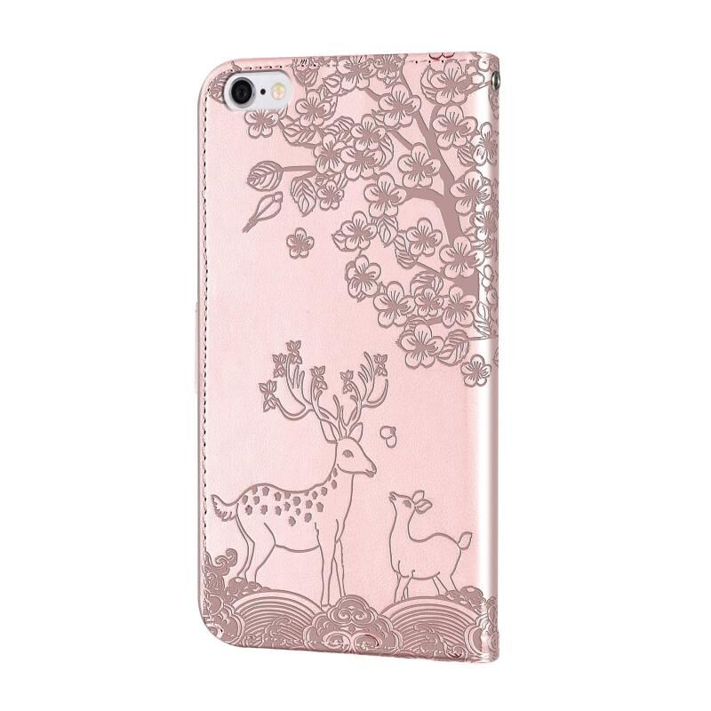 Θήκη δέρματος PU με οριζόντιο άνοιγμα και ανάγλυφο σχέδιο ελαφιού Sika, με βάση, θήκη καρτών, πορτοφόλι και κορνίζα φωτογραφιών για iPhone 6 Plus / 6s Plus (Κόκκινο)