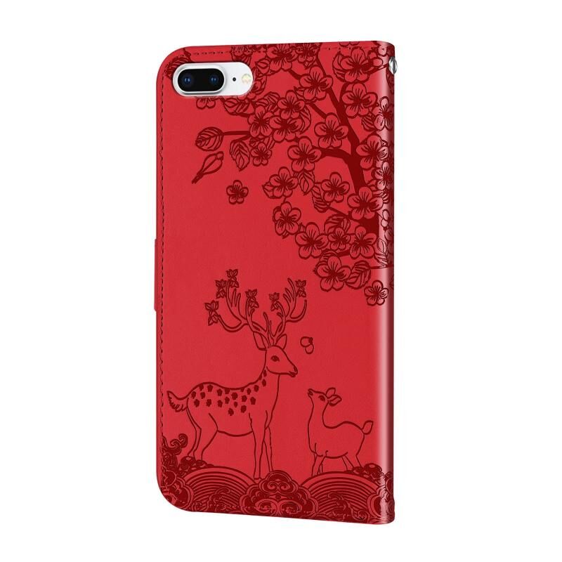 Θήκη δέρματος PU με οριζόντιο άνοιγμα και ανάγλυφο σχέδιο ελαφιού Sika, με βάση, θήκη καρτών, πορτοφόλι και κορνίζα φωτογραφιών για iPhone 8 Plus / 7 Plus (Κόκκινο)