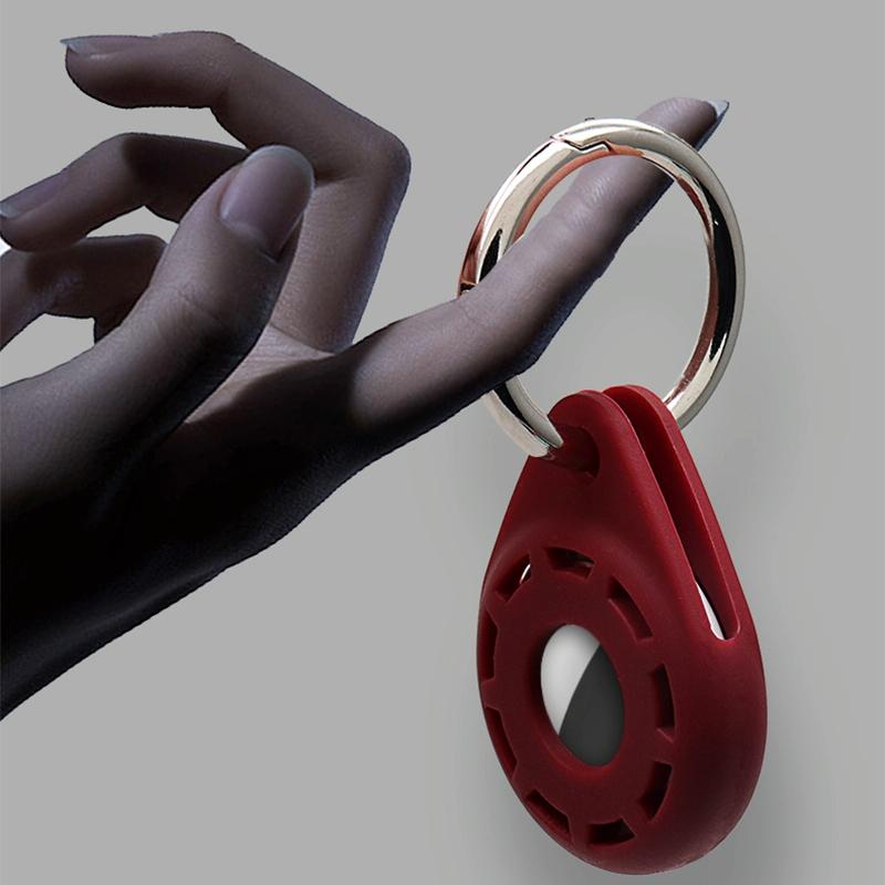 Θήκη Προστασίας Μαλακής Σιλικόνης Αντικραδασμική, Αντιχαρακτική με Δακτύλιο Κλειδιού για AirTag (Μπορντό) (MOMAX)