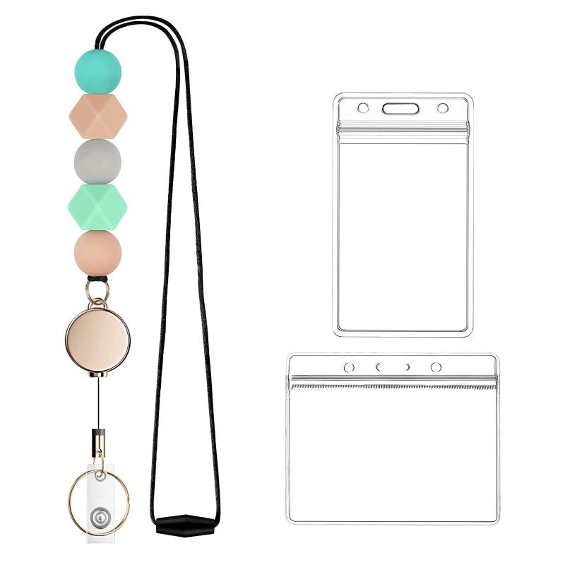 Silicone Beaded ID Badge Retractable Lanyard with 2 Card Holders For Teacher, Nurses, Students, Style: Blue