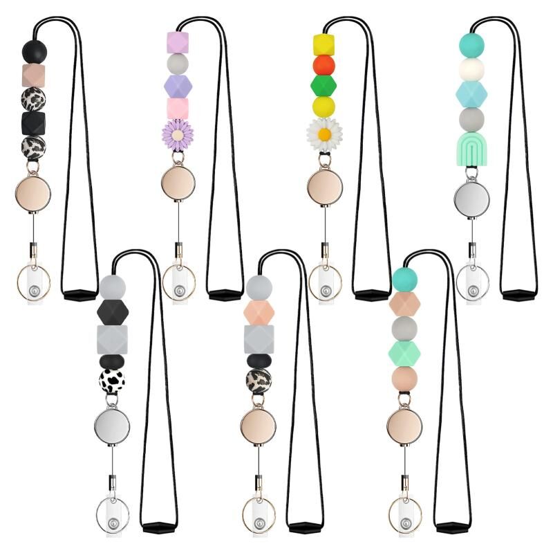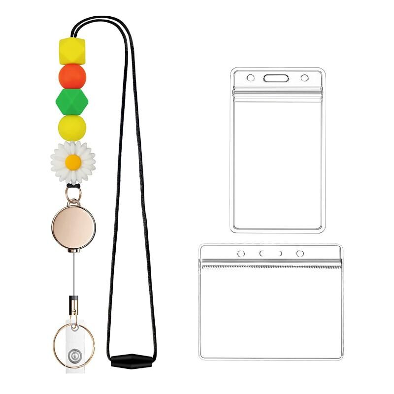 Κορδόνι αναγνώρισης με σιλικόνες και αναδιπλούμενο μηχανισμό, με 2 θήκες για κάρτες, για δασκάλους, νοσηλευτές, φοιτητές. Στυλ: Μαργαρίτα.