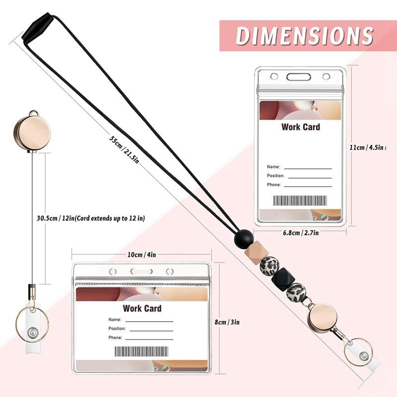 3. Το λουρί περιλαμβάνει 1 οριζόντια και 1 κάθετη θήκη για κάρτες ταυτότητας, και το υλικό PVC εξασφαλίζει ανθεκτικότητα και αδιαβροχοποίηση. Το κάθετο μέγεθος είναι 4,5 x 2,7 ίντσες και το οριζόντιο μέγεθος είναι 4 x 3 ίντσες, και το κατάλληλο μέγεθος μπορεί εύκολα να καλύψει τις ανάγκες σας.