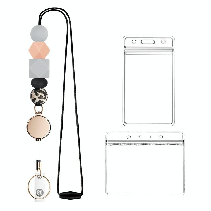 Κορδόνι αναγνώρισης με σιλικόνες και αναδιπλούμενο μηχανισμό, με 2 θήκες για κάρτες, για δασκάλους, νοσηλευτές, φοιτητές. Στυλ: Γκρι.