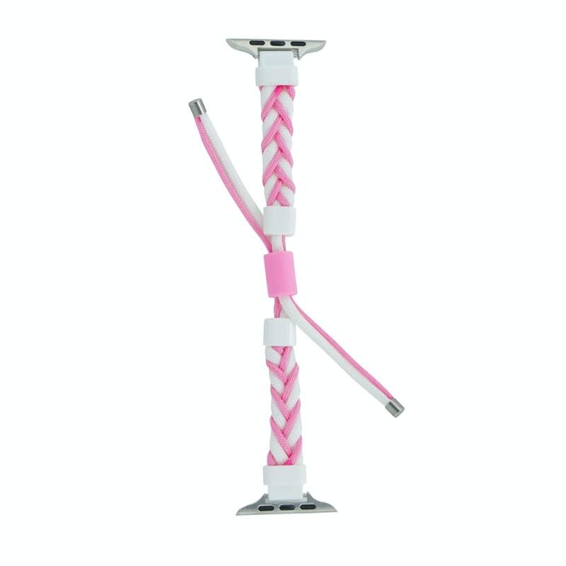 Λουρί ρολογιού για Apple Watch 42mm από σιλικόνη με πλεκτή κοτσίδα και νάιλον (Λευκό Ροζ)