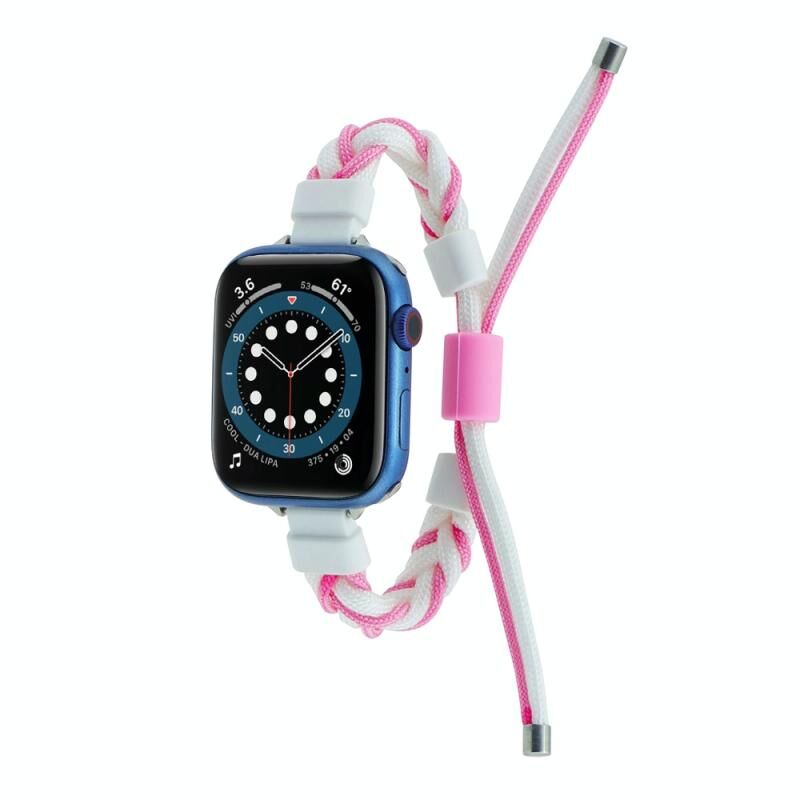 Λουρί ρολογιού για Apple Watch 5 40mm από σιλικόνη με πλεκτή κοτσίδα και νάιλον (Λευκό Ροζ)