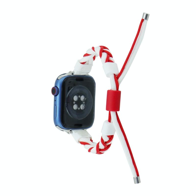 Λουρί ρολογιού για Apple Watch SE 2023 40mm από σιλικόνη με πλεκτή κοτσίδα και νάιλον (Λευκό Ροζ)