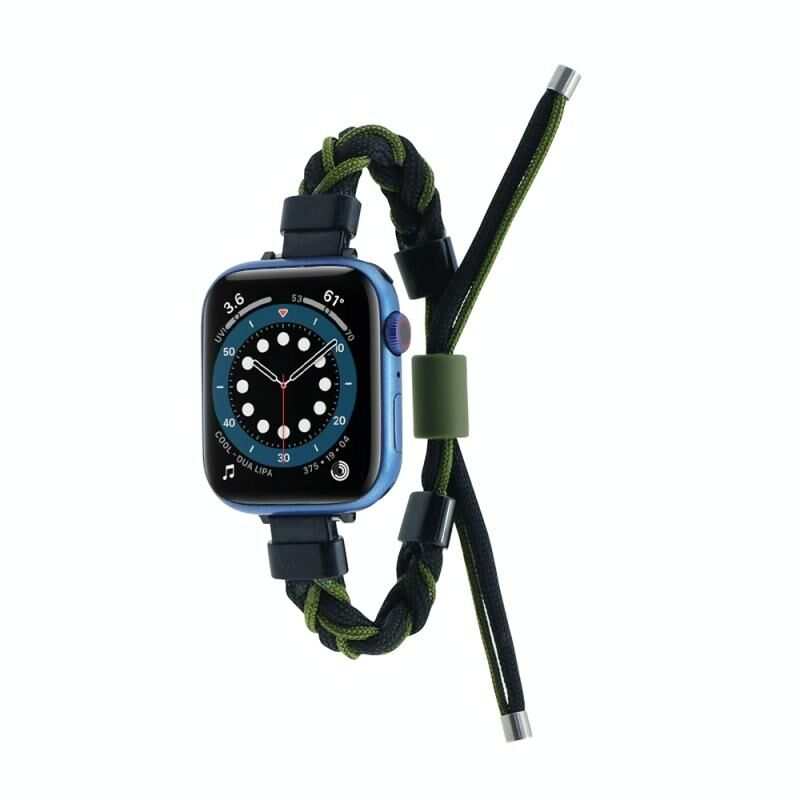 Λουρί ρολογιού για Apple Watch SE 2023 44mm από σιλικόνη με πλεκτή κοτσίδα και νάιλον (Μαύρο πράσινο)