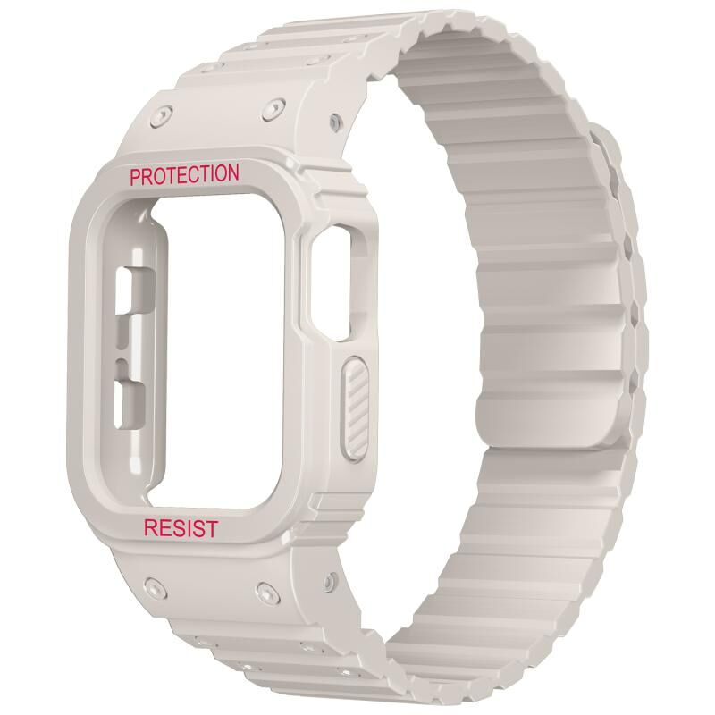 Silicone Integrated Frame Watch Band For Apple Watch Series 8&7 45mm / SE 2&6&SE&5&4 44mm(Starlight)