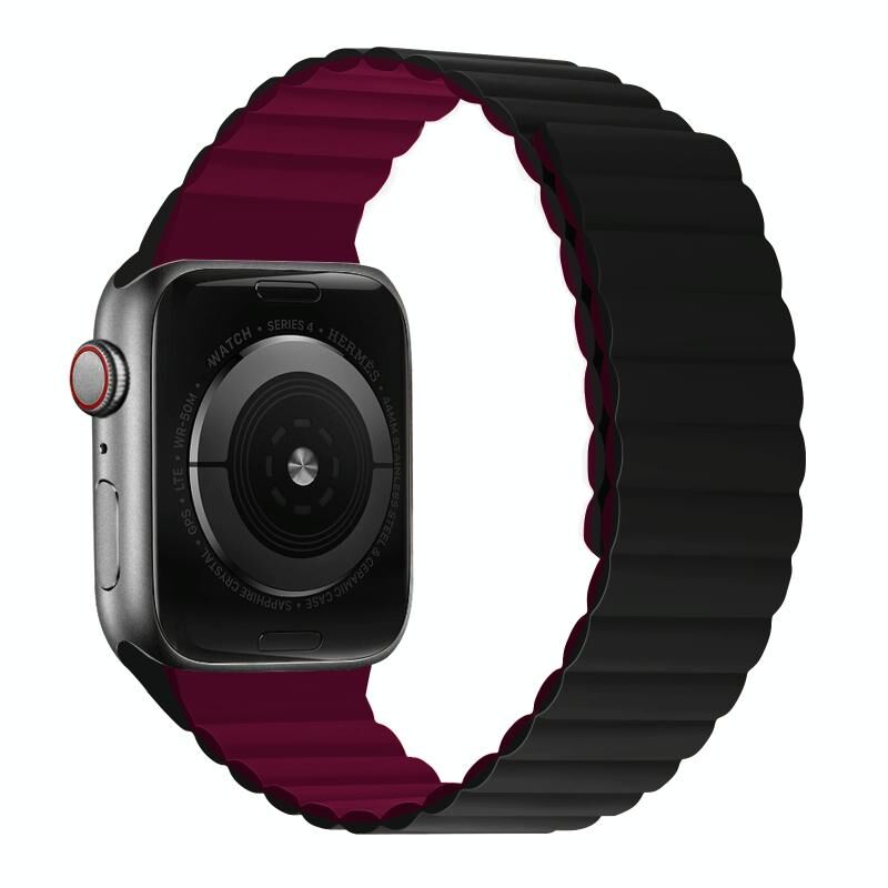 Λουράκι ρολογιού από σιλικόνη με ενσωματωμένο μαγνήτη και μακρύ ιμάντα για Apple Watch Series 8&7 45mm / SE 2&6&SE&5&4 44mm / 3&2&1 42mm (Μαύρο Κρασοκόκκινο)