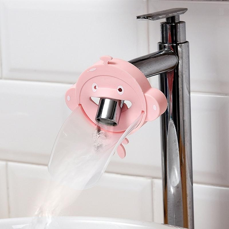 Silicone Monkey Shape Children Cartoon Faucet Water Sink Baby Hand Washing Auxiliary Extender(Pink)