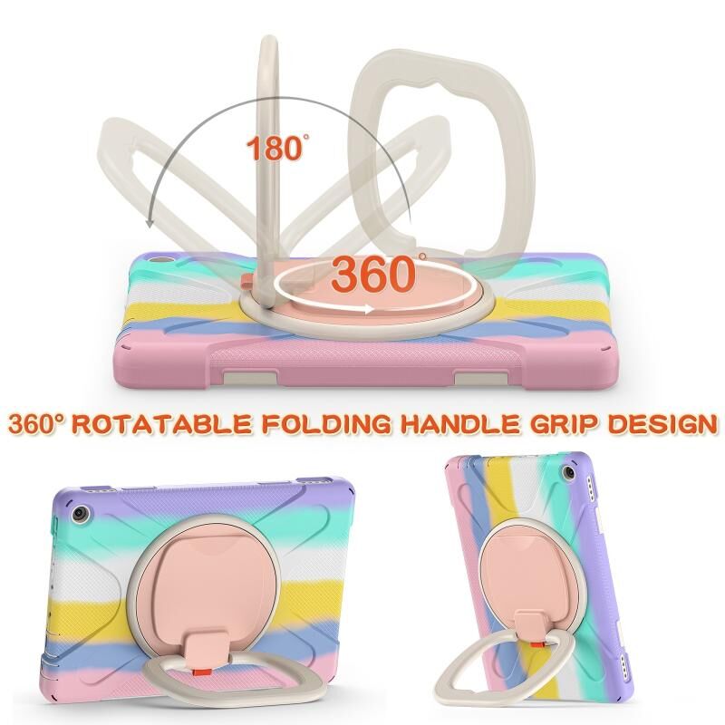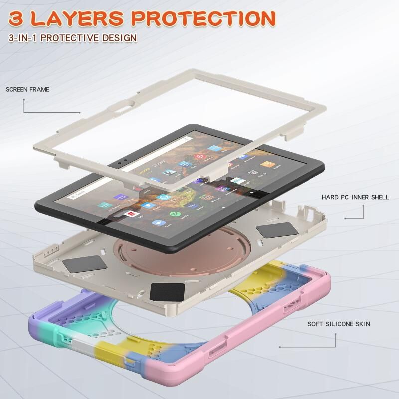 Προστατευτική θήκη σιλικόνης + PC με θήκη & λουράκι ώμου για το Amazon Kindle Fire HD 10 2021 (πολύχρωμο ροζ)