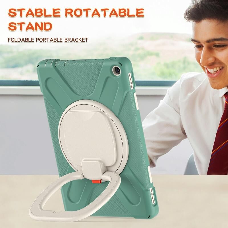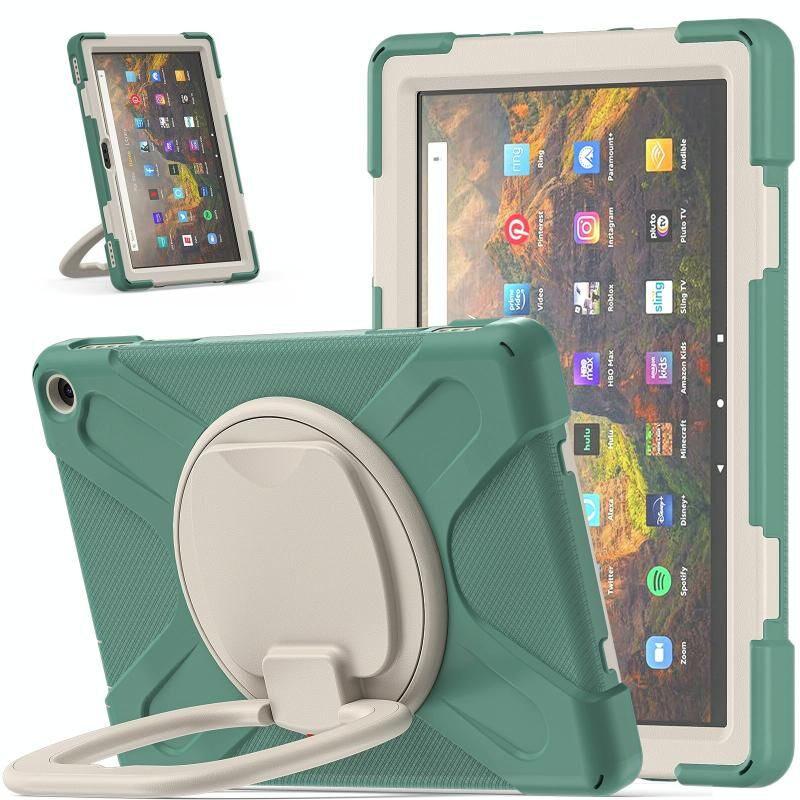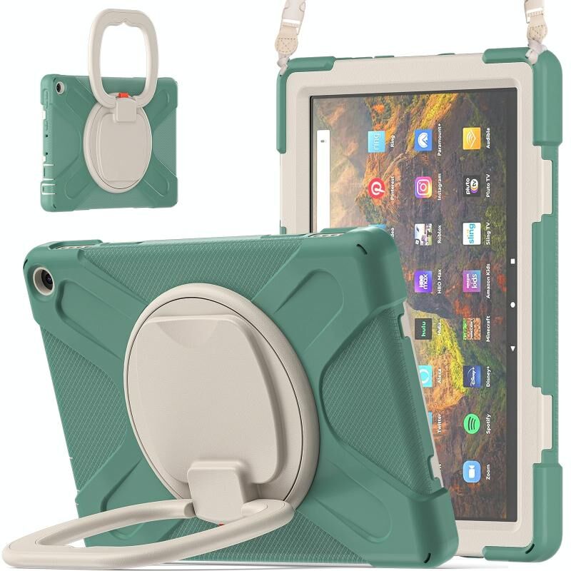 Προστατευτική θήκη σιλικόνης + PC με θήκη & λουράκι ώμου για το Amazon Kindle Fire HD 10 2021(Emerald Green)