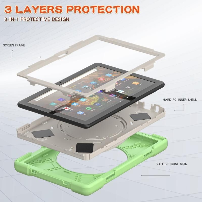 Προστατευτική θήκη σιλικόνης + PC με θήκη & λουράκι ώμου για το Amazon Kindle Fire HD 10 2021 (Matcha Green)