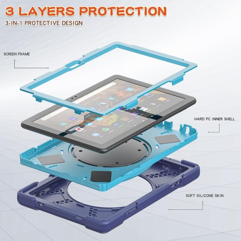 Προστατευτική θήκη σιλικόνης + PC με θήκη & λουράκι ώμου για το Amazon Kindle Fire HD 10 2021 (Navy Blue + Blue)