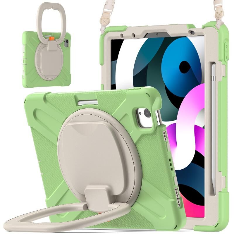 Θήκη Προστασίας από Σιλικόνη + PC με Λαβή & Λουρί Ώμου για iPad Air 2022 / 2020 10.9 (Μέντας Πράσινο)