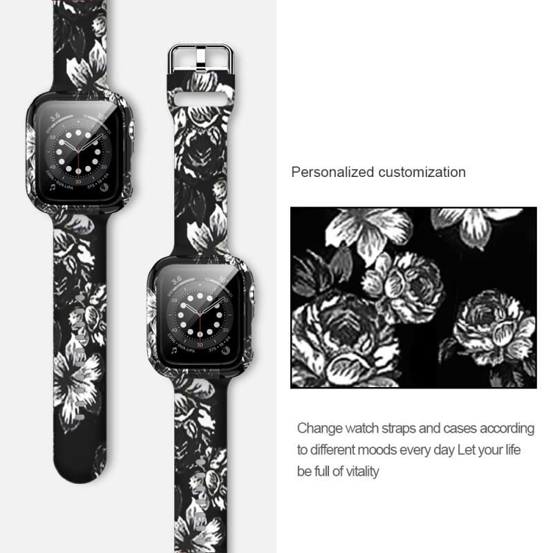 Silicone Printing Integrated Watch Case Watch Band For Apple Watch Series 3 & 2 & 1 42mm(Black Rose)