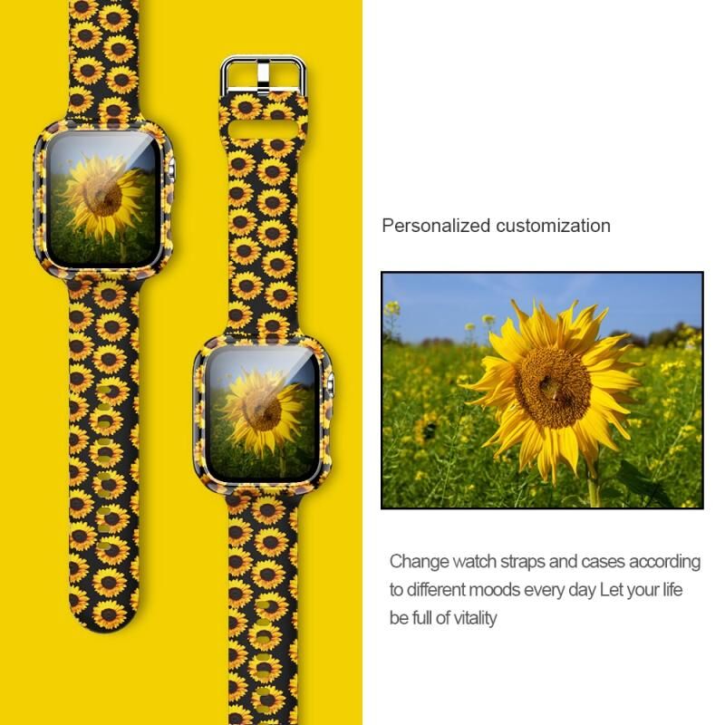 Silicone Printing Integrated Watch Case Watch Band For Apple Watch Series 3 & 2 & 1 42mm(Sun Flower)