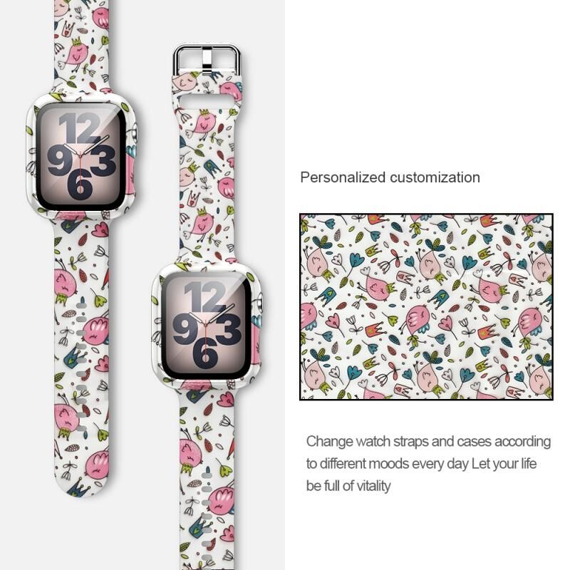 Silicone Printing Integrated Watch Case Watch Band For Apple Watch Series 3 & 2 & 1 42mm(White Florets)