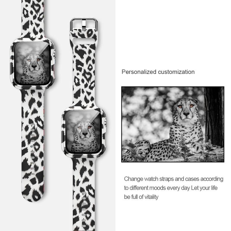 Silicone Printing Integrated Watch Case Watch Band For Apple Watch Series 3 & 2 & 1 42mm(White-haired Leopard)