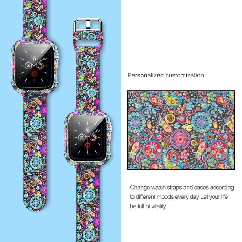 Silicone Printing Integrated Watch Case Watch Band For Apple Watch Series 7 45mm / & 6 & SE & 5 & 4 44mm(Ferris Wheel)