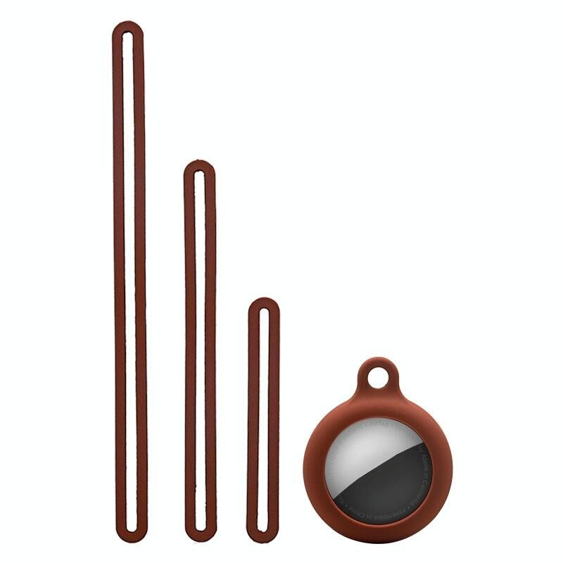 Silicone Shockproof Protective Cover Case with 3 Lanyards For AirTag(Brown)