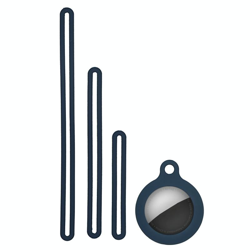 Silicone Shockproof Protective Cover Case with 3 Lanyards For AirTag(Midnight Blue)
