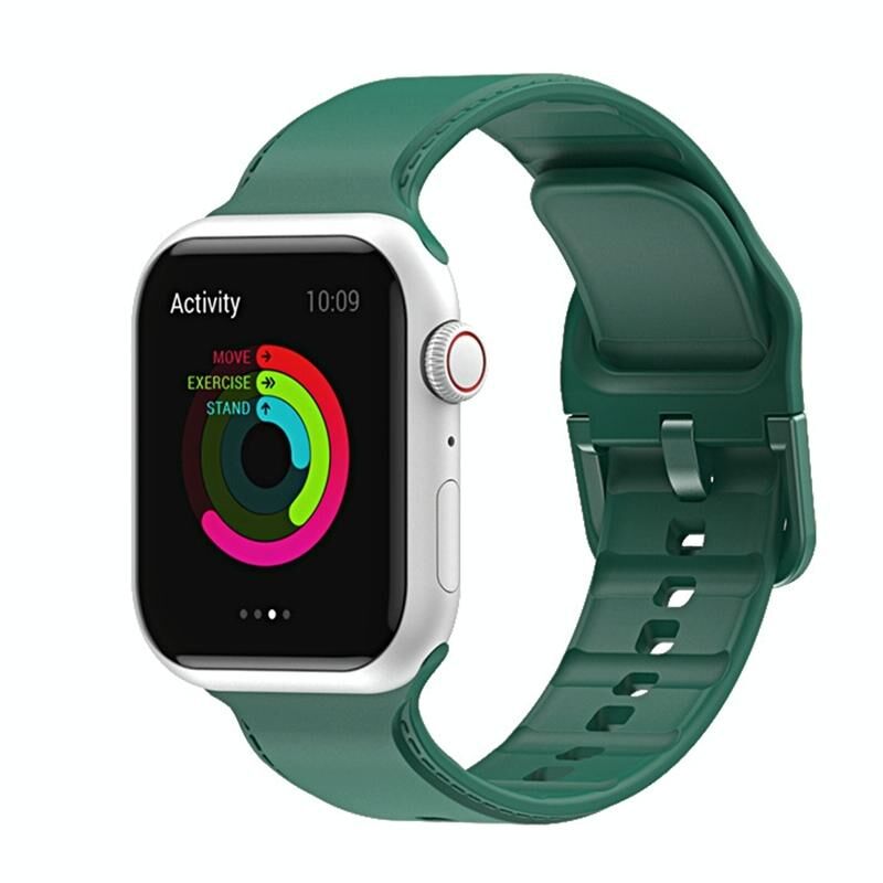 Silicone Stitching Watch Band For Apple Watch Series 9&8&7 41mm / SE 3&SE 2&6&SE&5&4 40mm / 3&2&1 38mm(Dark Green)