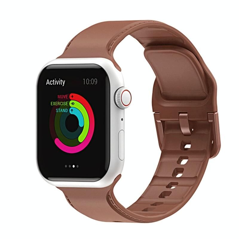 Silicone Stitching Watch Band For Apple Watch Ultra 49mm&Watch Ultra 2 49mm / Series 9&8&7 45mm / SE 3&SE 2&6&SE&5&4 44mm / 3&2&1 42mm(Brown)