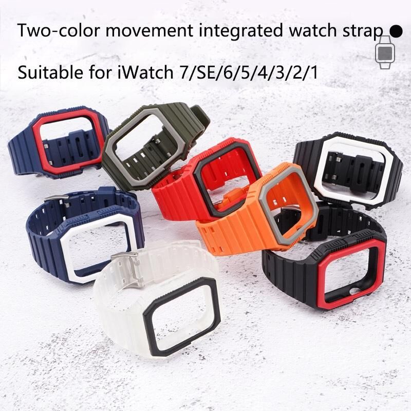 Silicone Strap with Case For Apple Watch Series 9&8&7 41mm / SE 3&SE 2&6&SE&5&4 40mm / 3&2&1 38mm(Black+White)