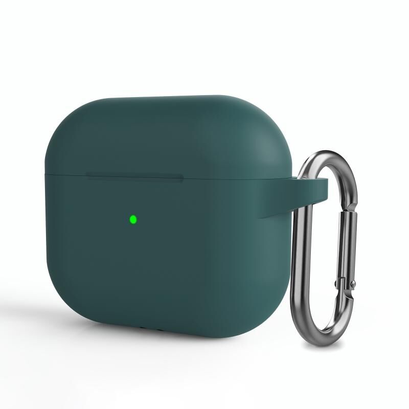 Silicone Thickening Wireless Earphone Protective Case with Hook For AirPods 3(Dark Green)
