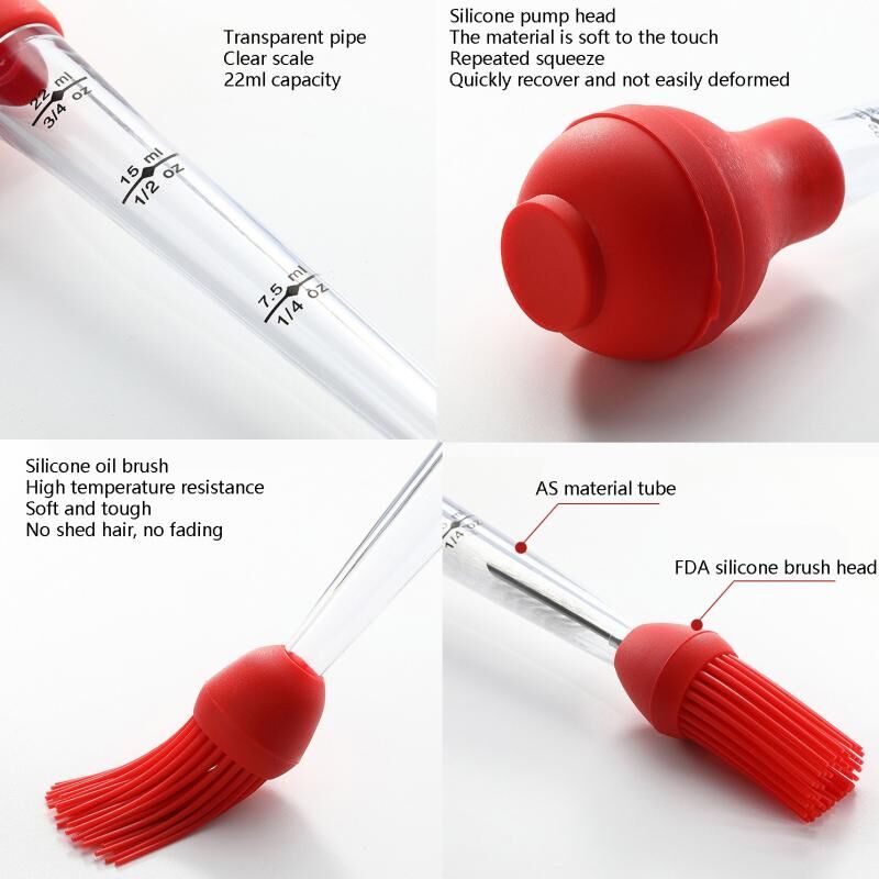 Σιλικόνης Τουρκία καρύκευμα αντλία μπάρμπεκιου εργαλείο στάζει καρύκευμα σωλήνα με βούρτσα καθαρισμού (κόκκινο)