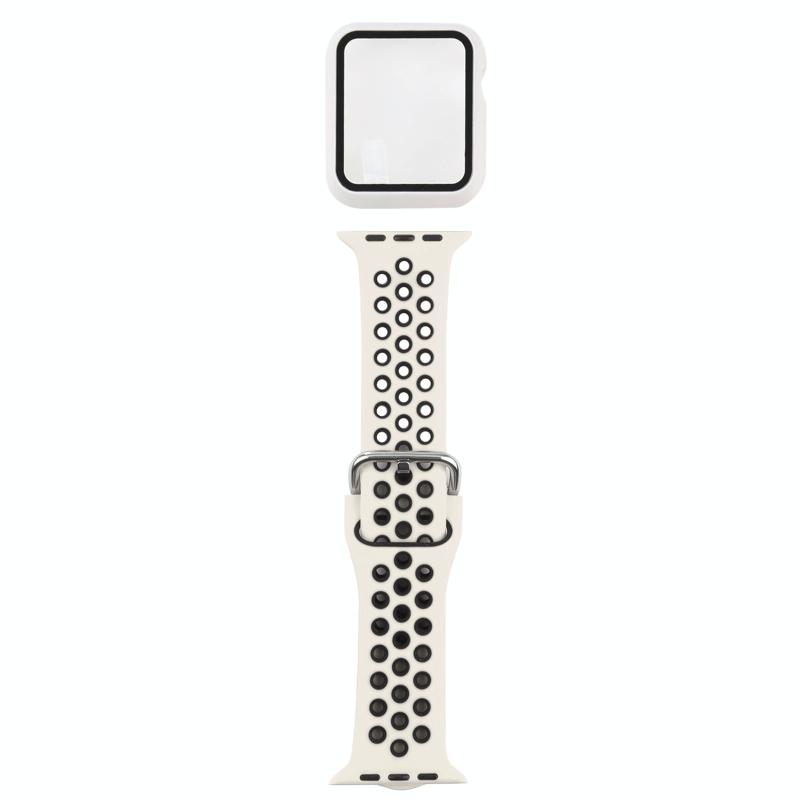 Silicone Watch Band + Protective Case with Screen Protector Set For Apple Watch Series 3 & 2 & 1 38mm(Apricot Black)