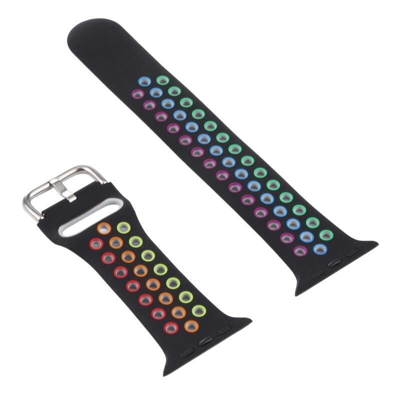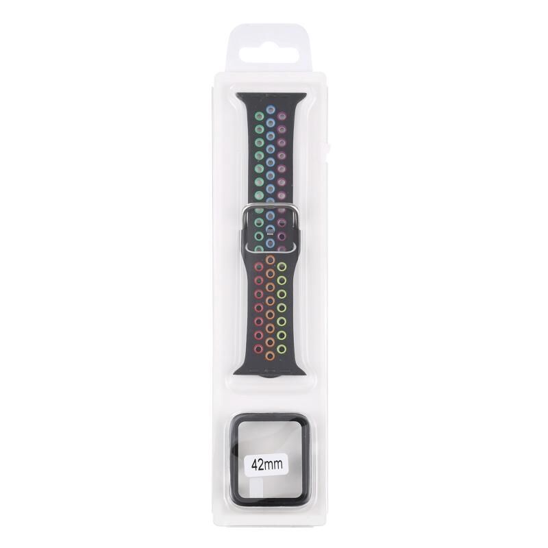 Silicone Watch Band + Protective Case with Screen Protector Set For Apple Watch Series 3 & 2 & 1 42mm(Black Colorful)