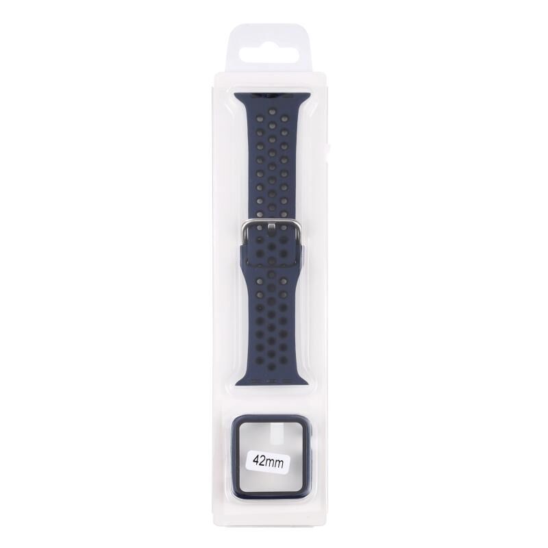 Silicone Watch Band + Protective Case with Screen Protector Set For Apple Watch Series 3 & 2 & 1 42mm(Blue Black)