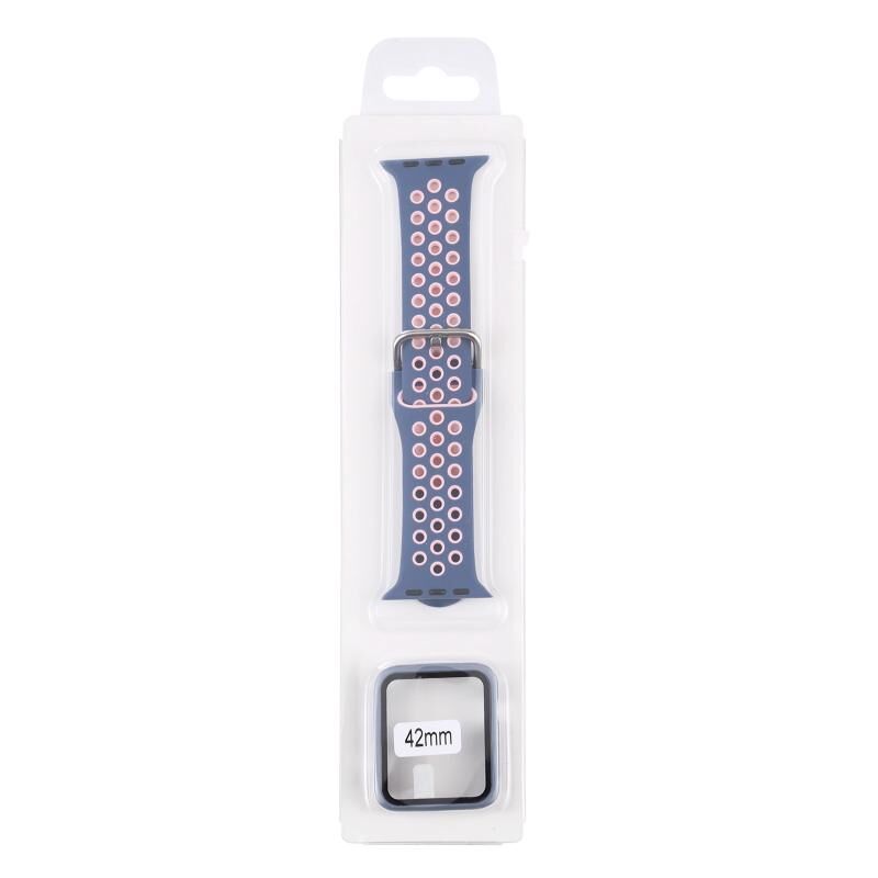 Silicone Watch Band + Protective Case with Screen Protector Set For Apple Watch Series 3 & 2 & 1 42mm(Blue Pink)