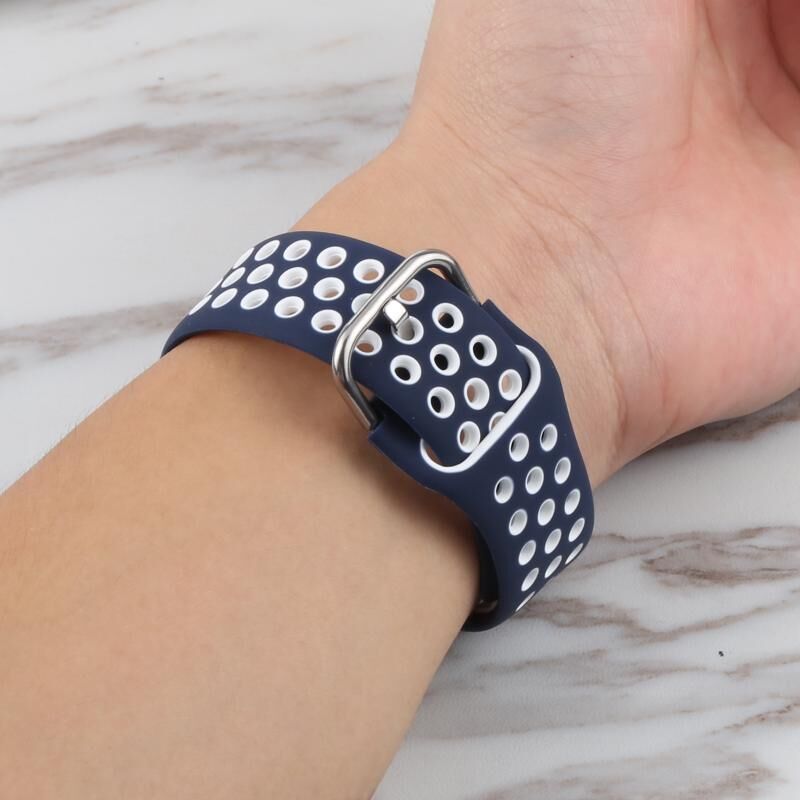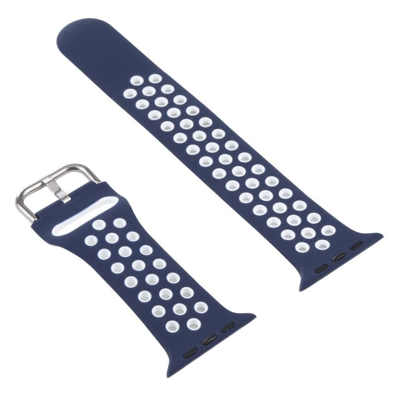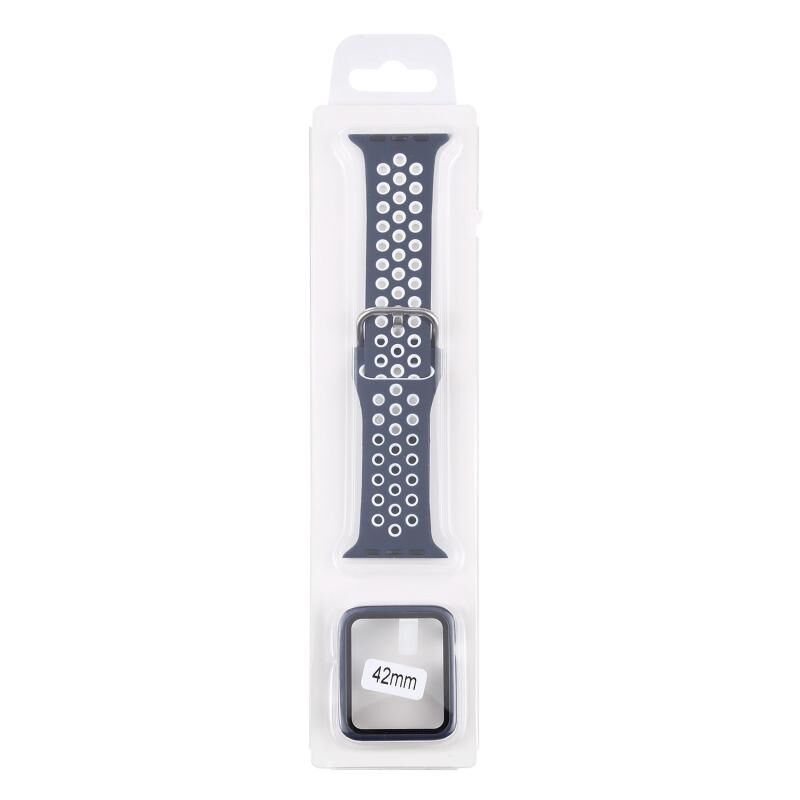 Silicone Watch Band + Protective Case with Screen Protector Set For Apple Watch Series 3 & 2 & 1 42mm(Blue White)